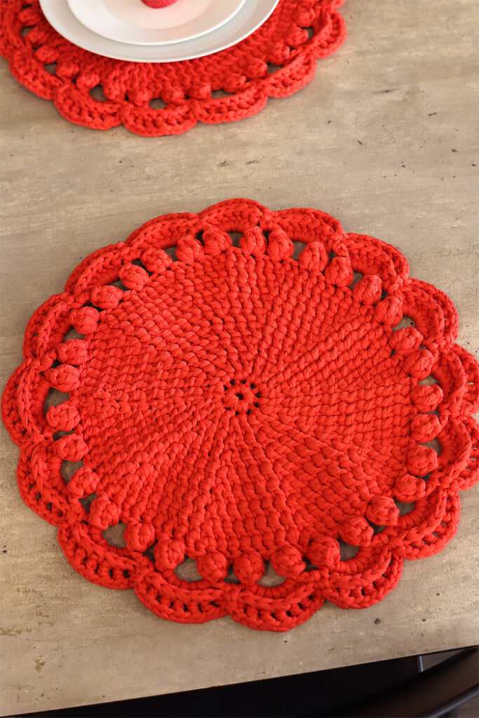 Com apenas 3 novelos do Fio de Malha Círculo Premium – cor 3881 (Maçã do Amor), é possível confeccionar 2 sousplats completos, unindo economia, estilo e aquele toque artesanal que transforma qualquer refeição em um momento especial.