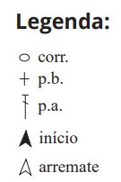 - Vire, suba 3 corr., 2 p.a., 2 corr., 3 p.a. sobre o grupo de p.a. da carreira anterior, 2 corr., 3 p.a. sobre o próximo grupo de p.a., e assim por diante até ao final da carreira.
